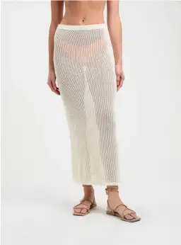 Form envious ensembles with the Pascha Midi Skirt. Crafted from a viscose blend in a beige colourway, this skirt will be the foundation of all your summer outfits. The knitted crochet design sits high on the waist with an elasticated waistband and falls to a straight-cut midi silhouette.