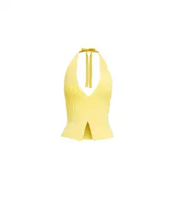 The Serah Vee Top is a curated addition to your spring/summer wardrobe. Made from a knitted viscose blend, the design is defined by its deep vee halter neckline and structural ribbing. A backless design, this flattering silhouette secures with ties at the neck.