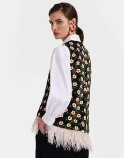La Double J La Scala Top Mayfair Black in Cotton Velvet With Feathers Size XS / AU 6