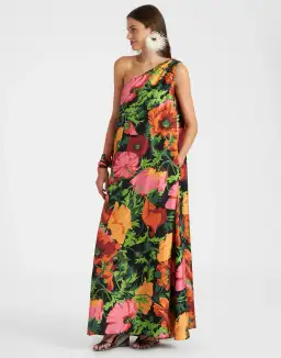 It features pockets (because every stylish individual needs them) and lets its vibrant, mood-enhancing prints capture the attention. The dress's standout attributes are its one-shoulder design, relaxed fit, maxi length, practical pockets, and discreet side zipper.