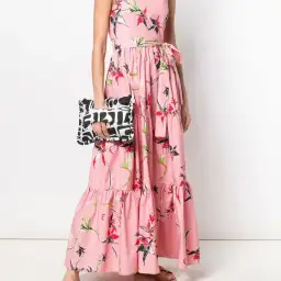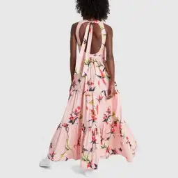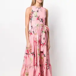 On the weekends with sneakers, at a dinner party with heels—this triple-tiered sundress is so versatile. The fact that it’s made in Italy. Pink cotton Pellicano Americano dress from La Double J featuring a floral print, a round neck, a sleeveless design, a back tie fastening, an open back, a belted waist, a flared tiered skirt and a long length.