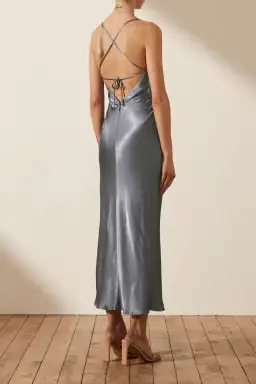 Shona Joy La Lune Asymmetrical Bias Cowl Midi Dress Blue Smoke Sie 8