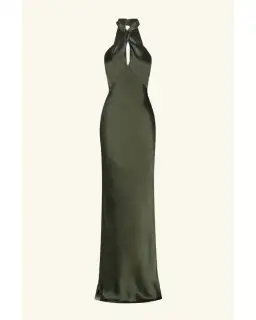 Shona Joy La Lune High Neck Twist Maxi Dress Olive Size AU 10