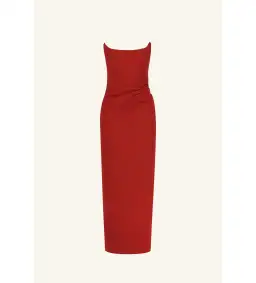 Corset maxi dress in red dahlia in a premium stretch cotton blend.