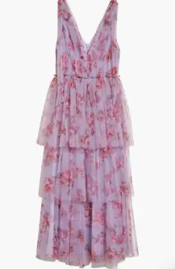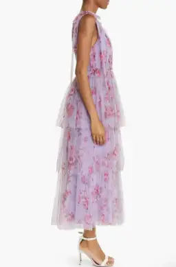 Lela Rose Floral Tiered Tulle Dress Purple Size AU 14