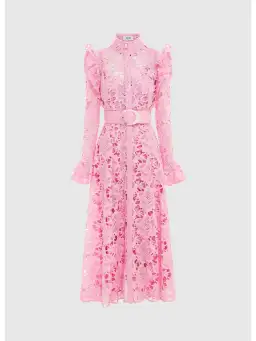 Leo Lin Aliyah Lace Butterfly Sleeve Midi Dress Candy Pink Size AU 8