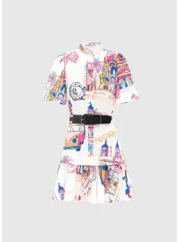The Beatrice Short Sleeve Mini Dress from LEO LIN is a fashionable and vibrant print, the combination of pink, white and blues gives the dress its beautiful colourful appearance.