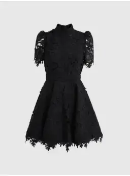 Leo Lin Elise Lace Short Sleeve Mini Dress Ebony Black Size AU 12