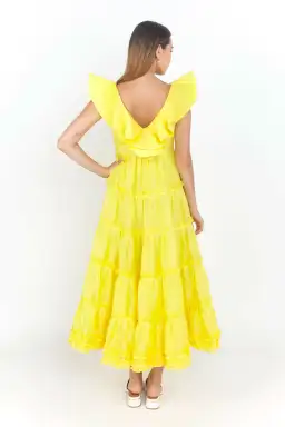 Leo Lin Limon Silk Linen Dress Yellow Size 8