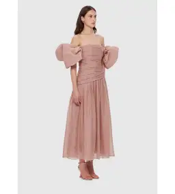 Leo Lin Lydia Puff Sleeve Midi Dress Size 10
