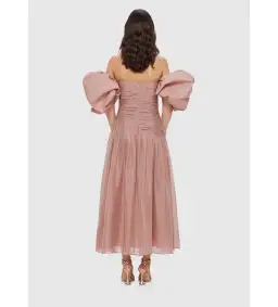 Step into soft sophistication with the Leo Lin 'Lydia' Midi Dress in Dusty Pink. This statement piece features voluminous puff sleeves and a structured bodice that cinches at the waist before flowing into a full midi skirt. Crafted in Leo Lin’s signature detailed fabrication, this dress is all about romance and regal charm.