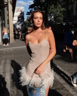 Laurie crystal-embellished feather-trimmed tulle mini dress. Designed with contemporary brides in mind, Leslie Amon's 'Laurie' dress is perfect for the after-party. It's cut from tulle embellished with sparkling crystals and has a wispy, feather-trimmed hem that moves beautifully. Wear yours with strappy heels and a clutch. Lightweight, stretchy fabric with feather trim