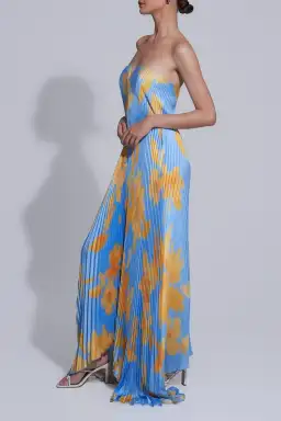 ** PLEASE NOTE THERE IS SMALL HOLES IN THE BOTTOM OF THE DRESS CAN'T BE SEEN WHEN WORN BECAUSE OF THE PLEATS. ** The Black Tie Gown - A silhouette that will stand the test of time, featuring a timeless strapless neckline and v detail. The long line billowing silhouette will move with finesse as you motion through your next soirée.