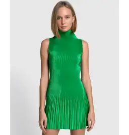 Mini sleeveless dress in a gorgeous material and colour with a flattering high neck.