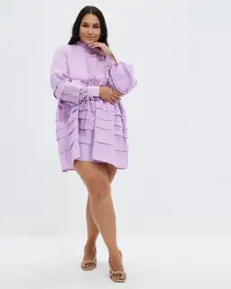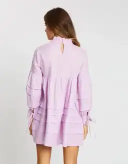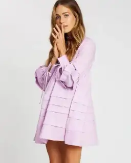 Aere Pleat Detail Linen Smock Dress in Lilac