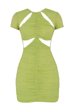 House Of CB Gathered Mesh Cutout Mini Dress Lime Size 10