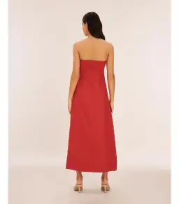 Aere Linen Empire Waist Maxi Dress Red Size AU 12