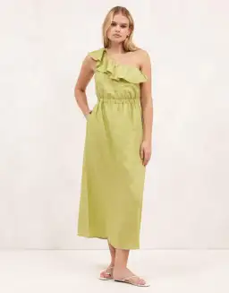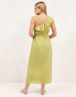 Aere Linen One Shoulder Midi Dress Bay Leaf Green Size 8