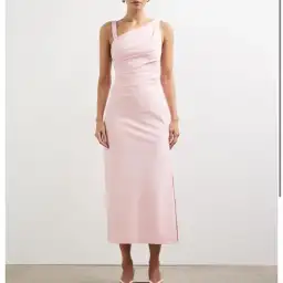 Lover Kilian Asymmetric Tuck Midi Dress in Baby Pink Size 10