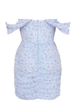 House of CB Luna Draped Corset Mini Dress Blue Floral Size 8