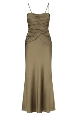 Shona Joy Luxe Ruched Bodice Midi Dress in Pine