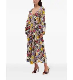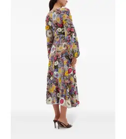 Be crowned best-dressed with the Lyra dress. It’s hand-appliquéd with a kaleidoscopic arrangement of blooms on a tulle backdrop, reminiscent of a painterly still life. The elaborate design has a classic V-neck and blouson sleeves that radiate ladylike appeal.