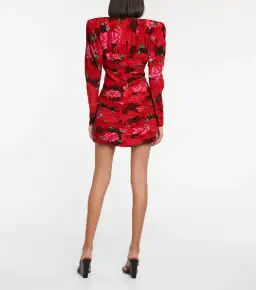 Magda Butrym Red Ruched Floral-print Silk Mini Dress Size XS