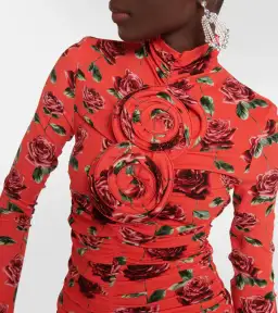 Magda Butrym High Neck Long Sleeve Ruched Mini Dress Red Orange Floral Size FR 36 / AU 8