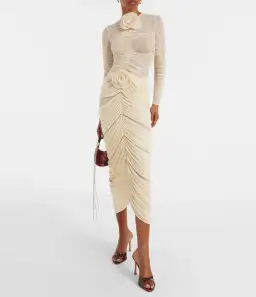 Magda Butrym Floral-Appliqué Ruched Midi Top and Skirt Set Cream Size 6