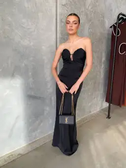 - Floor length slight mermaid dress with cut out sweetheart neckline