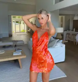 Turn heads in the Malika mini! Covered in stunning iridescent and orange sequins, you’re sure to be the star of the show!