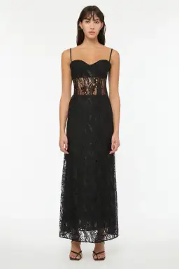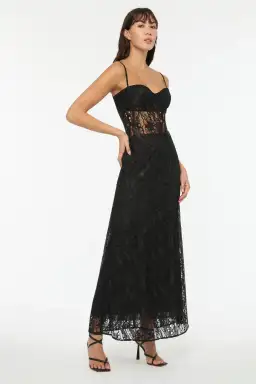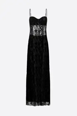 With a slim-fitting bodice with built-in cups and a flowing maxi-length skirt, the Deco Esprit Slip Dress is perfect for your next event. The floor-length gown is crafted in a unique metallic black lace while the opaque in-built bra to provide that extra support and coverge