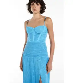 Make a stylish statement at your next event in the new colour way of the Double Time Pleat Dress. The dress features elegant pleats throughout and considered boning through the corset top and flows into a beautiful maxi skirt with a subtle split.