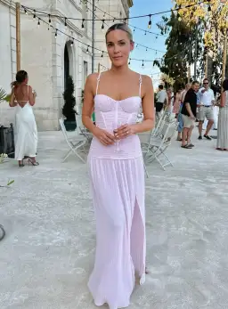 Make a stylish statement at your next event in the new Hydrangea colour way of the Double Time Pleat Dress. The dress features elegant pleats throughout and considered boning through the corset top and flows into a beautiful maxi skirt with a subtle split.
