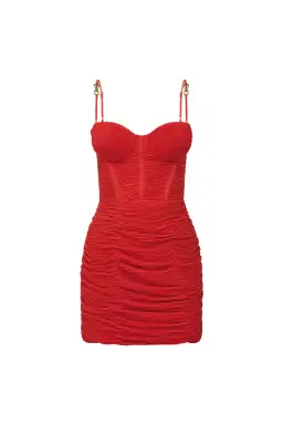 The Double Time Pleat Mini Dress epitomises modern elegance with its sleek mini silhouette. It features elegant pleats throughout, a corset top, and ruching details on the skirt, complemented by adjustable straps that can be adjusted to your liking. - Manning Cartell