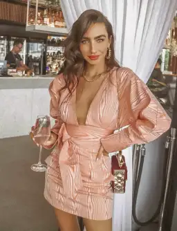 Can be rented as a set with the matching Mini Mode Wrap Top at a discounted rate.