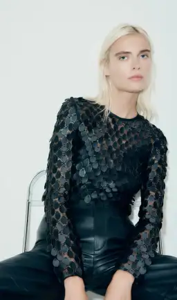 Crafted from a crisp laser-cut teardrop design appliquéd onto a fine Chantilly lace, the Supreme Extreme Long Sleeve Top is a textural statement piece sure to take your look to the next level. The accompanying slip camisole keeps you covered.