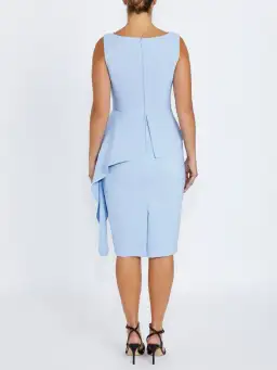 The Anthea Crawford Marcia Dress is a stunning fusion of contemporary design and classic elegance. Made from luxurious powder blue crepe, it showcases an asymmetrical V-neckline and gathered bust detail for a flattering fit. The layered ruffle skirt adds texture and movement, while the knee-length hem creates a chic, polished look. Featuring an invisible center-back zip and a back split for comfort, this fully lined dress ensures a smooth, refined finish. Perfect for special occasions or evening events, the Marcia Dress offers sophisticated style with a modern twist. Style code: 2AC2122.Powder blue crepe fabricationLayered ruffle skirt detailingAsymmetrical v-necklineKnee lengthInvisible centre back zip with splitFully linedGathered detail on bustDesigned in AustraliaMade in VietnamModel is 173cm/5'8" and is wearing a size 10Composition:Main: 92% Polyester, 8% Elastane. Lining: 97% Polyester, 3% Elastane.