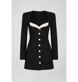 The Mary Jane Mini features a mini length hem, long sleeves, contrast bust detailing and a statement button front closure. Styled back with a super sheer stocking and your favourite sling back or knee high boot, this is a timeless investment piece to add to your evening wardrobe.