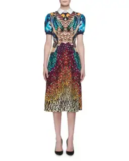 Mary Katrantzou Osprey Silk Dress Feather Print Size 6