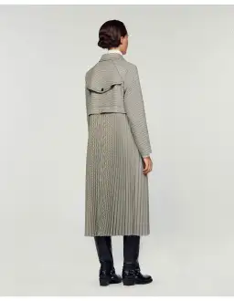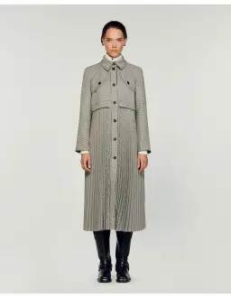 Long trench coat with houndstooth pattern, embellished with pleated yokes, long sleeves with tab cuffs, SANDRO stamped press-stud fastening, flap hem and slit pockets on the sides.