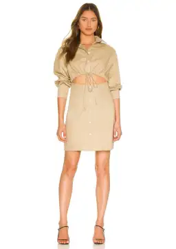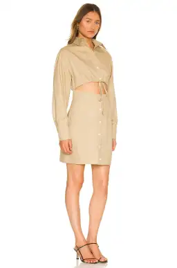 Matthew Bruch Cutout Mini Shirt Dress Beige