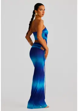 Melani The Label Elia Strapless Gathered Mesh Top and Valetta Mesh Gathered Skirt Blue Ombre Size 8