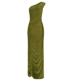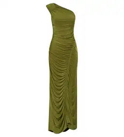 Meshki Capri Gathered Slinky Maxi Dress Vintage Olive Size 6/XS