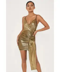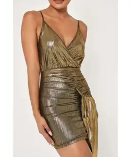Meshki Dante Drape Wrap Mini Dress In Gold Size S / AU 8