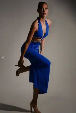 Meshki Nicha Diamante Cut Out Maxi Dress Cobalt Blue Size 8