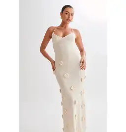 Meshki Suki Knit Maxi Dress With Flowers Nude Size Small / AU 8