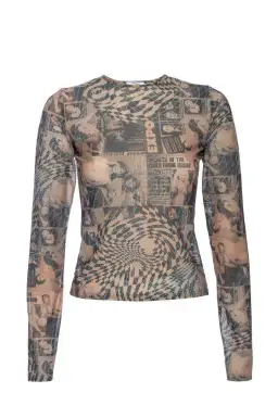 Miaou Wanted Long Sleeve Tee Print Size XS/Au 6