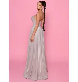 A stunning full length dress by Nicoletta NP149. A flattering strapless design featuring a draped overlay and crafted in a shimmer material.