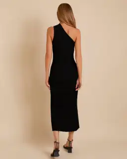 Minimia Esentiales Britta One Shoulder Knitted Midi Dress Black